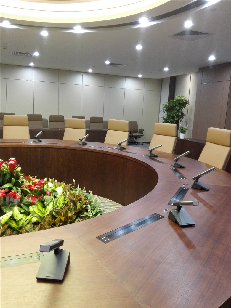 大百匯集團位于深圳羅湖,是一家多元化企業集團。因為公司人員比較多,所以需要一個大型會議室。為了迎合客戶的需求和企業的整體氣質和文化,我們向客戶推薦了簡約穩重版的會議臺。簡約而不簡單,穩重而不死板。我們一直認為,會議室在一個公司的地位是至高無上的,一個便于洽談的會議室是團隊簇成完美想法的前提,是智慧碰撞的空間。