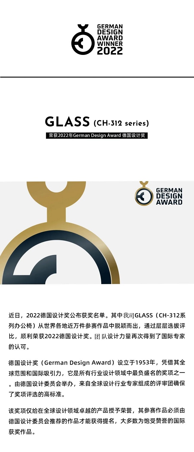 喜訊 | 天象文儀公司新品GLASS系列榮獲2022年德國設計獎
